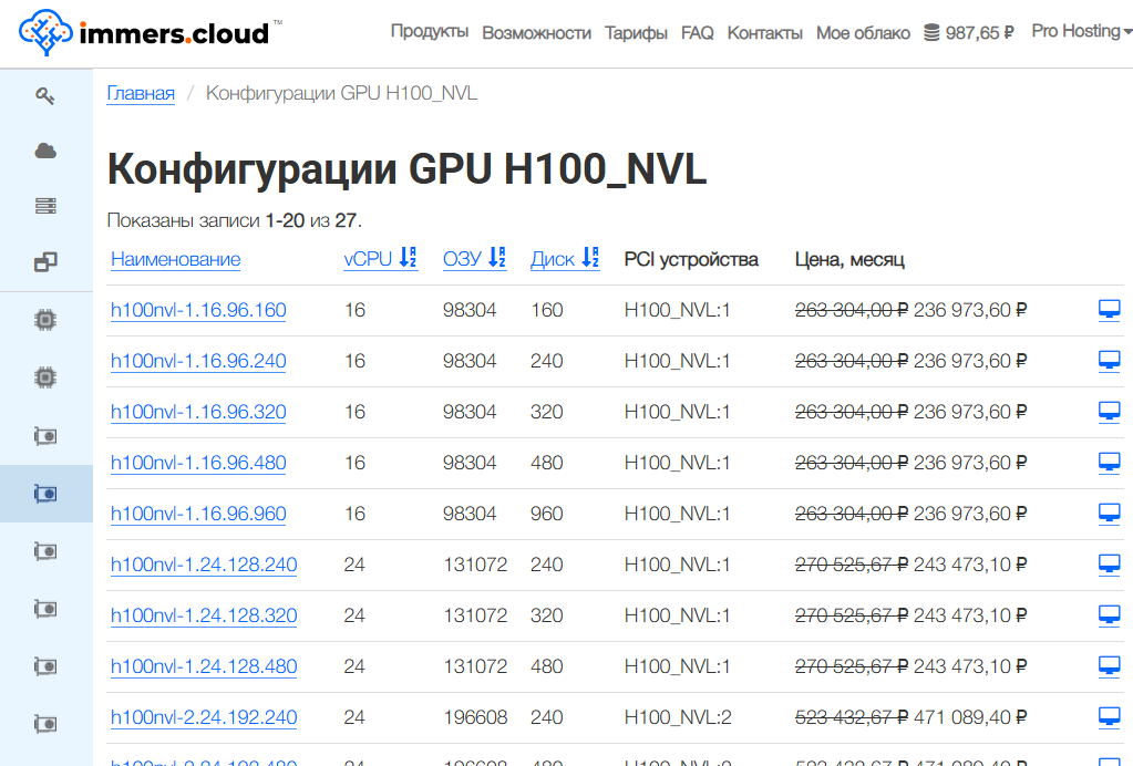 Добавив NVIDIA H100 NVL 94GB в облачные конфигурации, immers·cloud расширил линейку решений для тяжёлых ИИ-нагрузок. Это ускоритель с акцентом на объём памяти и пропускную способность, а не на декоративные характеристики. Подходит не всем, но тем, кому подходит, альтернативы обычно искать уже негде.