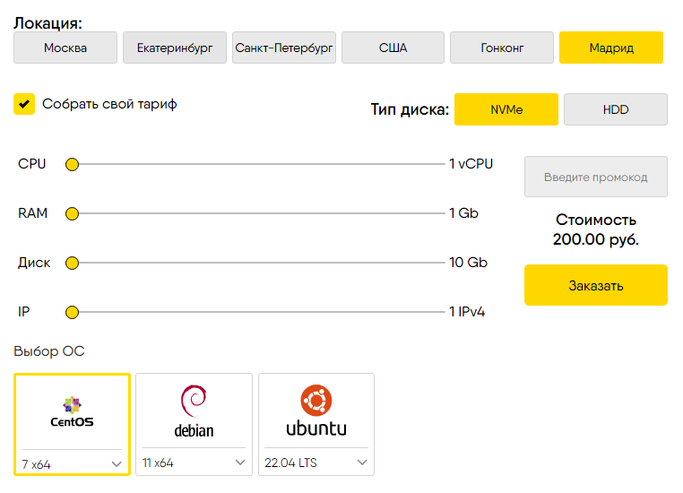 Серверы 62yun размещены в дата-центре IPcore S.L., расположенном в столице страны, в Мадриде. Оборудование подключено к интернет-каналу на скорости 10 Гбит/с — это позволяет провайдеру обеспечивать каждую виртуальную машину гарантированной скоростью 250 Мбит/с, скорость в обычных условиях при этом составляет 1 Гбит/с. К заказу доступны VDS стоимостью от 200 российских рублей (чуть более $2) в месяц, возможна установка Linux и Windows. Заказать тест можно в личном кабинете 62yun.